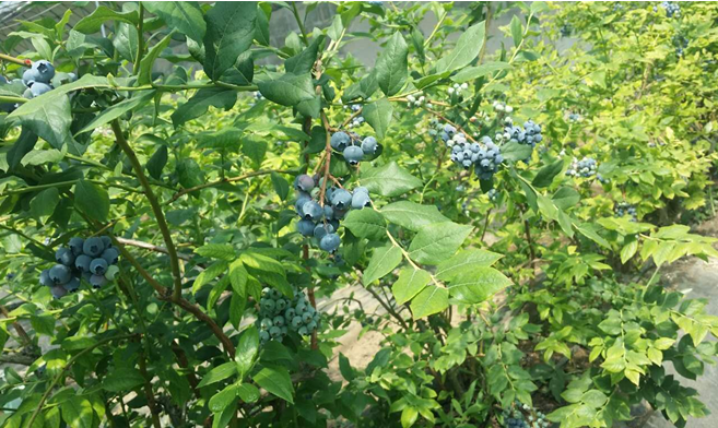 (四)營(yíng)養(yǎng)期:從藍(lán)莓采摘結(jié)束到秋末植株葉片枯黃,為積累營(yíng)養(yǎng)而決定來年產(chǎn)量,這一階段繼續(xù)噴施碳?xì)浜朔?。每畝每次用碳?xì)浜朔?0毫升兌水15公斤噴施,10天噴1次,約噴2次。
